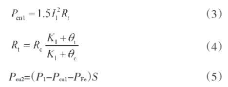 GB/T 1032中,Pcu1和Pcu2由負(fù)載試驗(yàn)獲取,負(fù)載試驗(yàn)的相關(guān)數(shù)據(jù)均需折算到由熱試驗(yàn)獲取溫升后計(jì)算的規(guī)定溫度。本文目的是實(shí)時(shí)獲取當(dāng)前效率,以風(fēng)機(jī)作為電機(jī)負(fù)載,只需在當(dāng)前負(fù)載下計(jì)算Pcu1和Pcu2,需要根據(jù)當(dāng)前溫度和測(cè)量直流電阻時(shí)定子繞組的實(shí)際溫度換算得出當(dāng)前定子直流電阻。